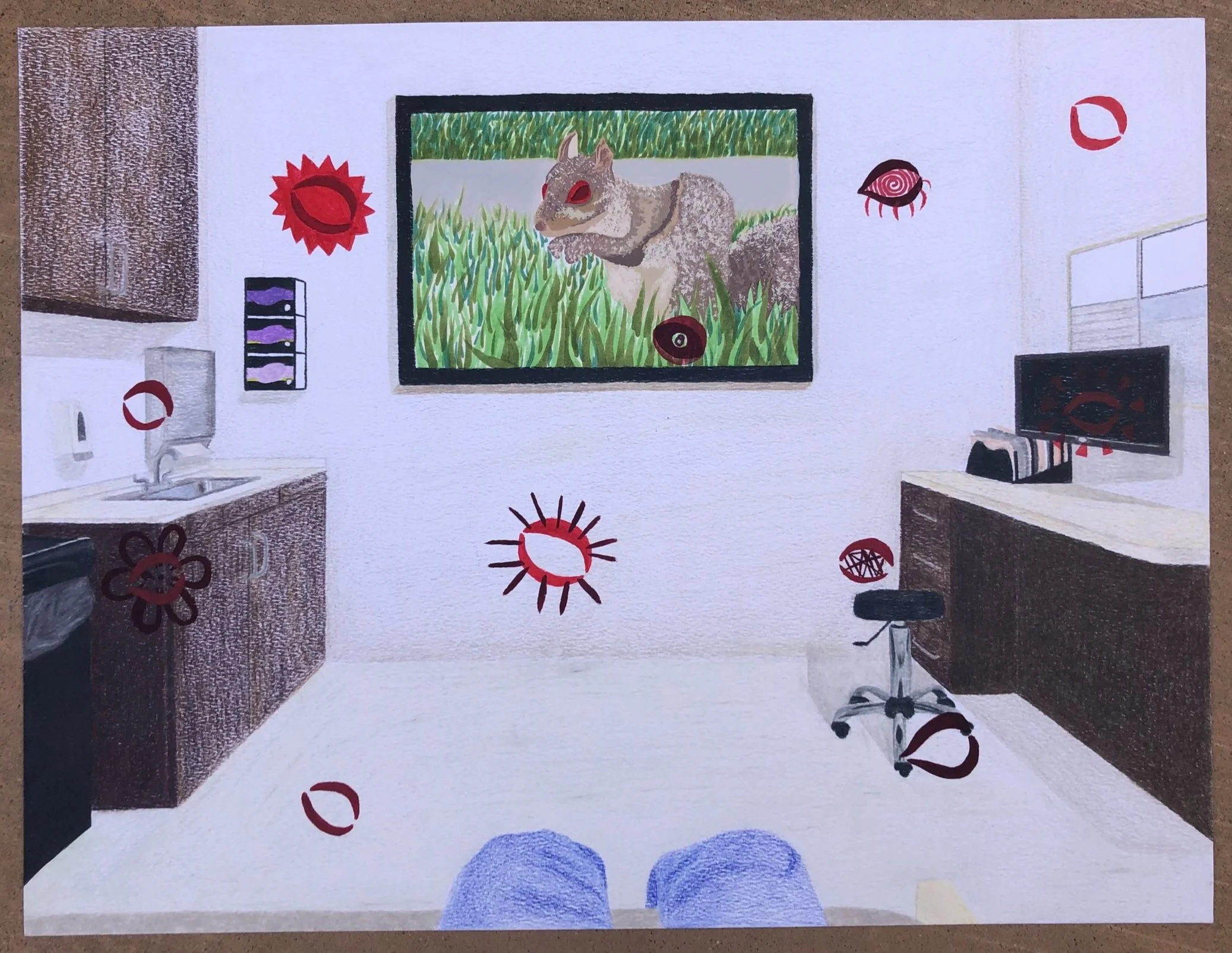 My first neurology appointment was in this room and many more times after that. There is a picture of a squirrel across from where I sit and its very intimidating. I’m supposed to look at it when my neurologist shines a light in my eyes to see if they dilate. However, all I’m thinking about is how everyone and the squirrel is looking at me.