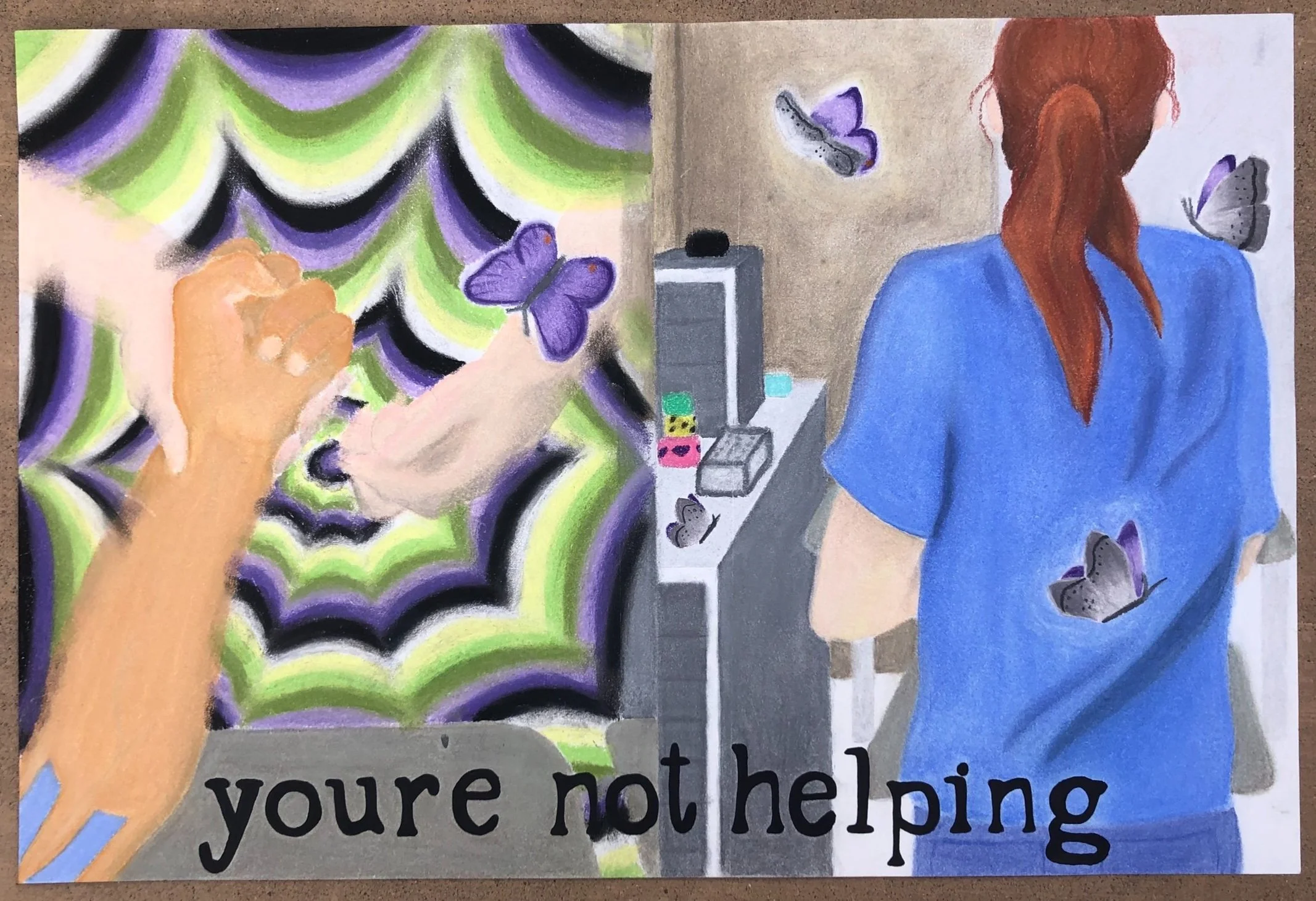 In my Sustained Investigation, I explored how each doctor's appointment, treatment and the normal day in my life affected my emotions, outlook on life, and the next part of the process towards balance. I worked to express myself through color and how my imagination precedes reality. I used both acrylic and watercolor paint to show the distinction between brightness, solidness, and the softness of color. For example, you can tell the difference in “Balance”: where I wanted to show how once I grew older, it was harder to keep balance between the dark and light in life as the dark may overcome the light; and “Zoom”: where I wanted to show that as I felt physically & mentally weak and confused after so many months that I compared myself to the realness of objects in life. I then experimented with pastels as I have never used them before and realized how strong they appear to be which reflects in how powerful my emotions were in pieces “Your’e Not Helping” and “Routine”.